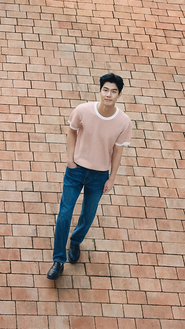 남성) 리넨터치 스트라이프 크루넥 워셔블 니트